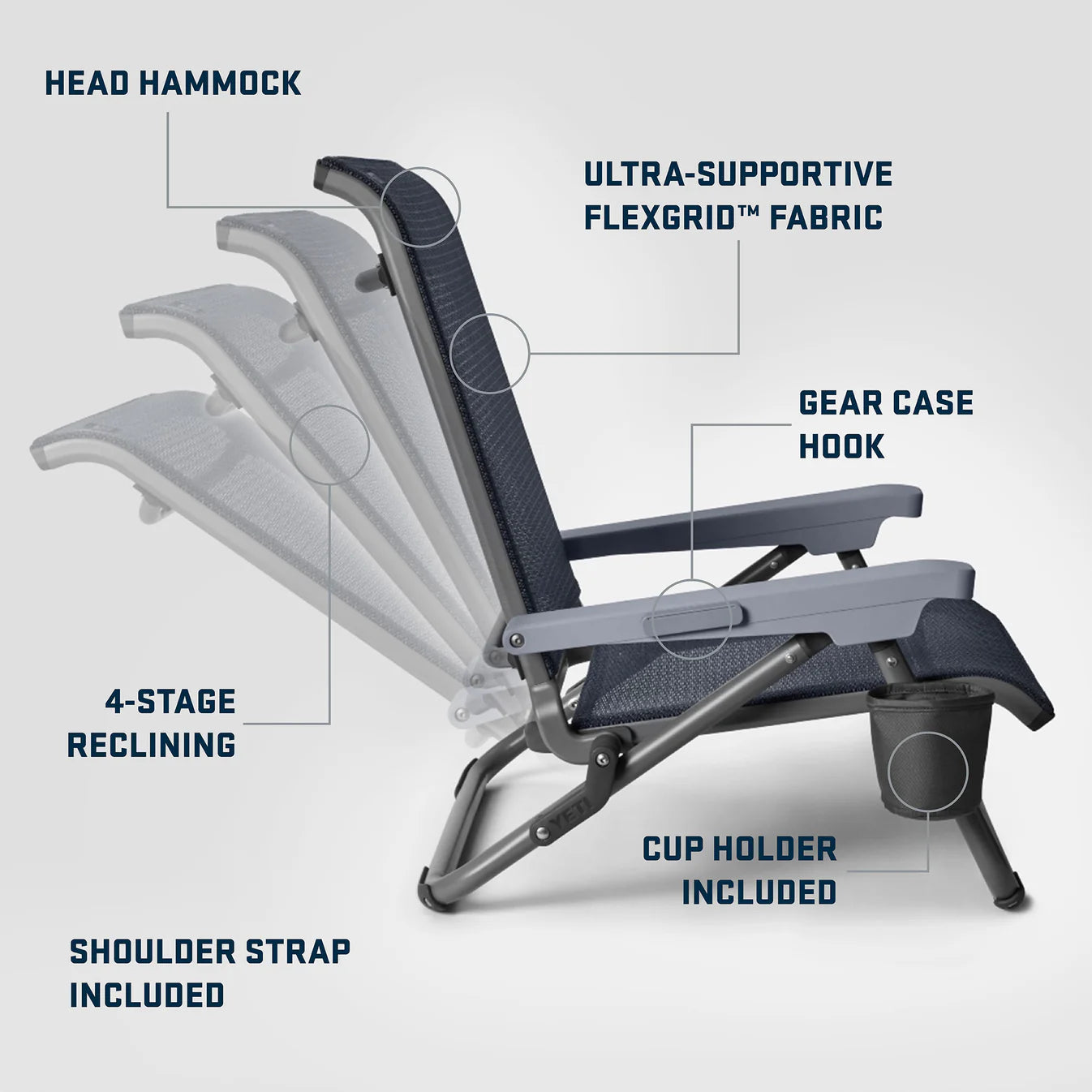 - Multiple reclining positions and waterfall headrest offer maximum comfort and nap-ability