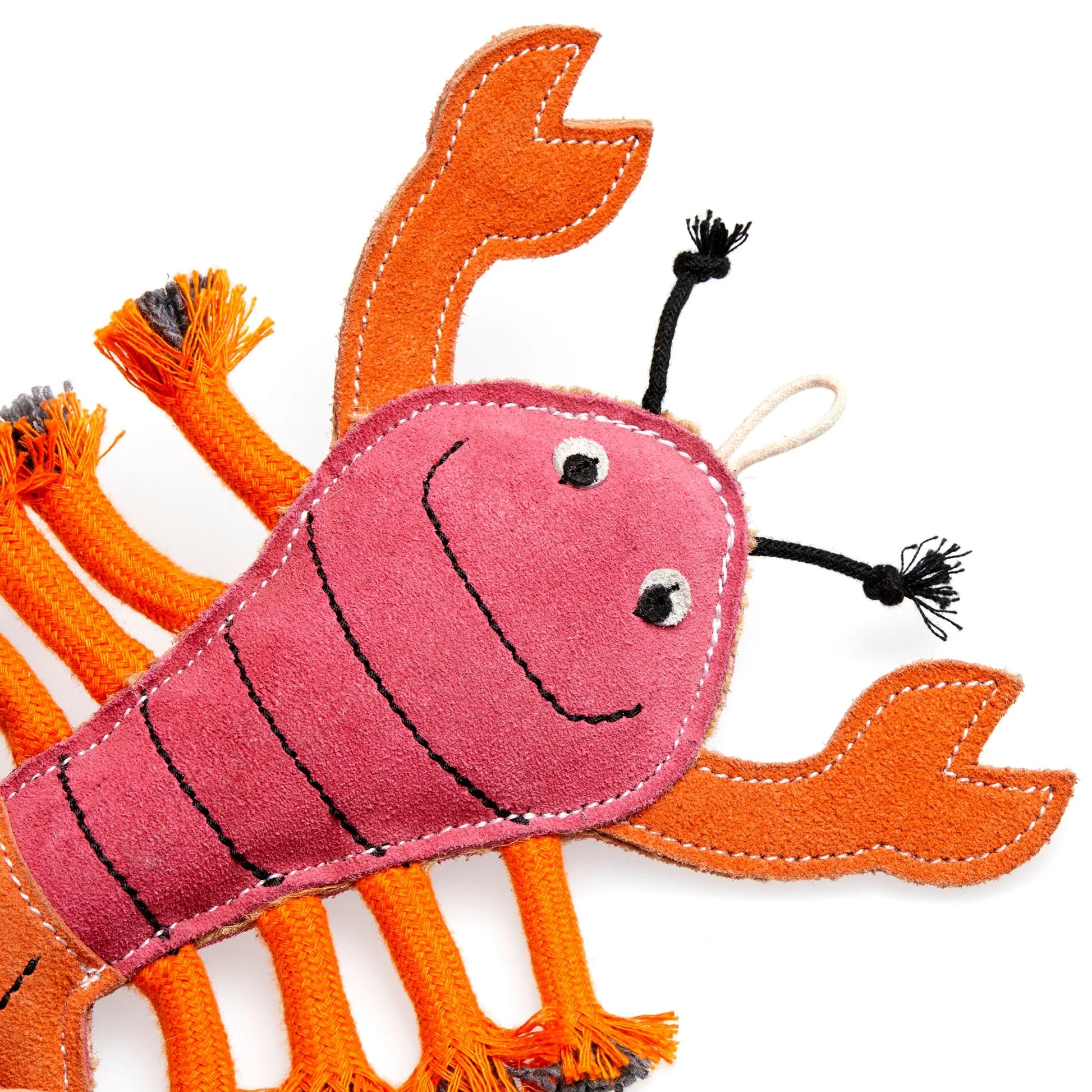 Made from a suede outer with natural stuffing and plaited jute rope legs, this bright and smiley crustacean will make a fun addition to your dog's G&W Eco Toy collection!