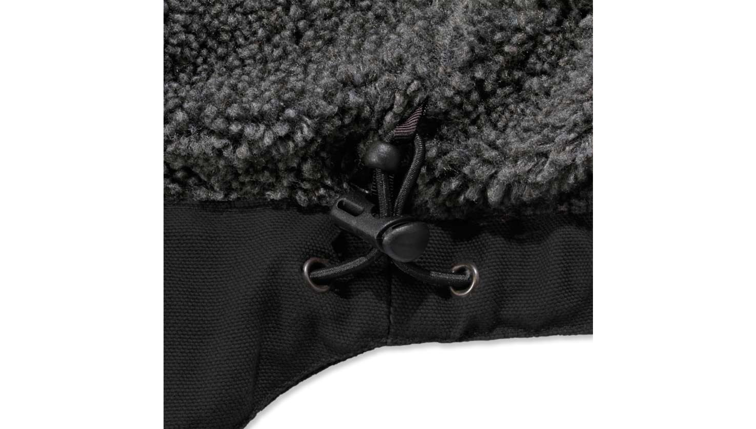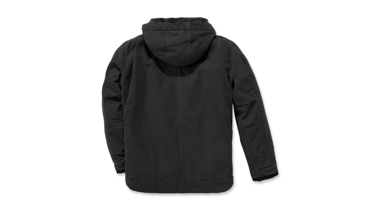 Relaxed Fit · Wind Fighter™ - Wind resistant · Attached three-piece hood with low profile adjustment at hood hem · Two chest pockets with flaps and snap closure · Two lower front pockets · Two interior pockets, one pocket with zipper closure and one with hook-and-loop closure · Full-length front zipper with interior and exterior storm flaps with snap closure · Cordura® reinforced sleeve hem with inner rib knit cuffs · Drop tail and draw cord adjustable hem · Triple stitched main seams · Back Bi-Swing pleats · Carhartt label sewn on pocket · 12 oz/yd² - 407 gsm · Washed Duck · Sherpa-lined body for extra warmth · 100% Cotton