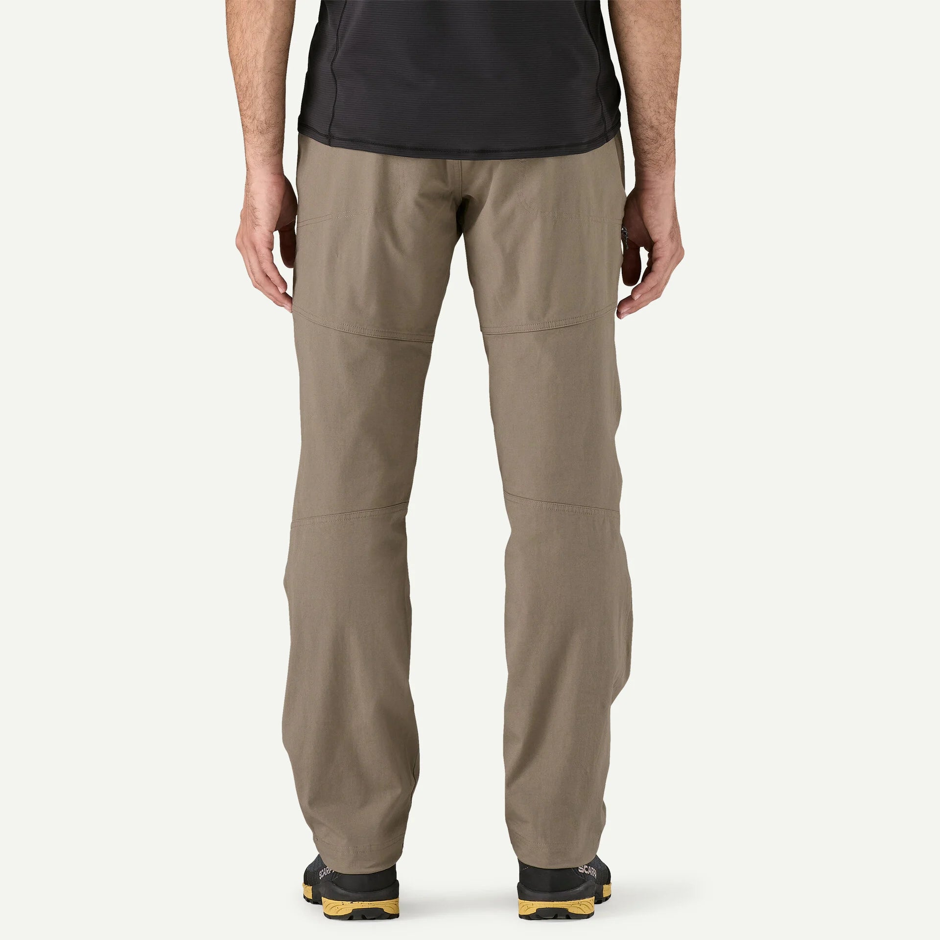 Two top-entry rear pockets create a reinforced seat for added durability; a right-thigh zippered security pocket sits comfortably above the knee and below harness leg loops