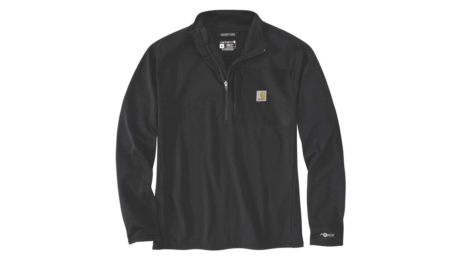 Relaxed Fit · Carhartt Force™ - FastDry™ Technology is engineered to fight sweat and dry fast, so you stay cool and comfortable 24/7 · Mock neck · Long Raglan Sleeve · Left chest pocket with zipper closure · Half-length front zipper with chin protector · Thumbholes for added warmth · Flat two needle coverstitch hem · Raglan sleeve increases range of motion · Smooth flatlock seams · Stretch side and underarm panels for mobility · Carhartt Force™ labelling on left sleeve · Carhartt label sewn on pocket · 7.1 oz/yd² - 241 gsm · Carhartt Force™ Fleece · 94% Polyester/6% Elastane