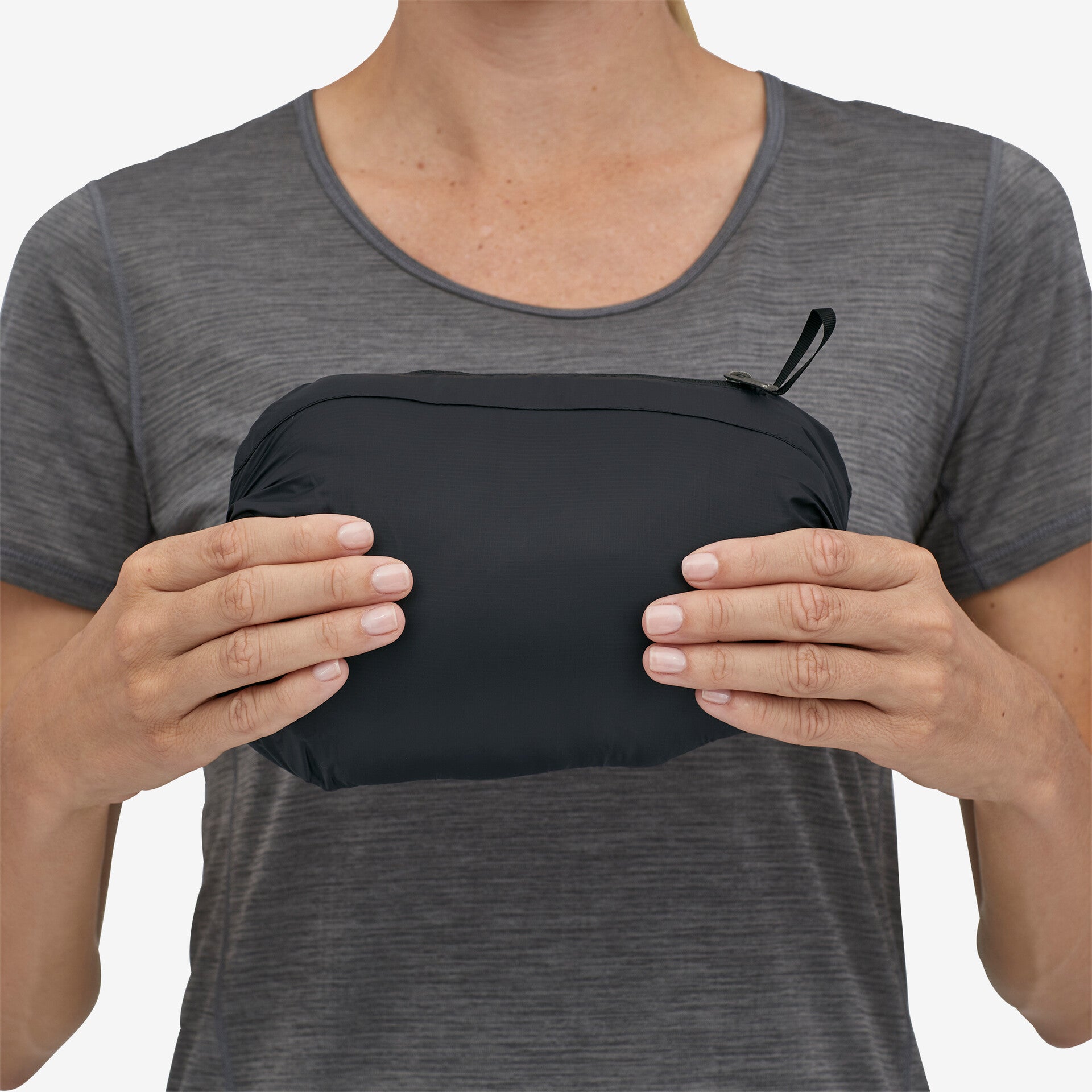 Two on-seam handwarmer pockets have invisible zippers, one interior zippered left-chest pocket converts to a stuffsack with a carabiner clip-in loop