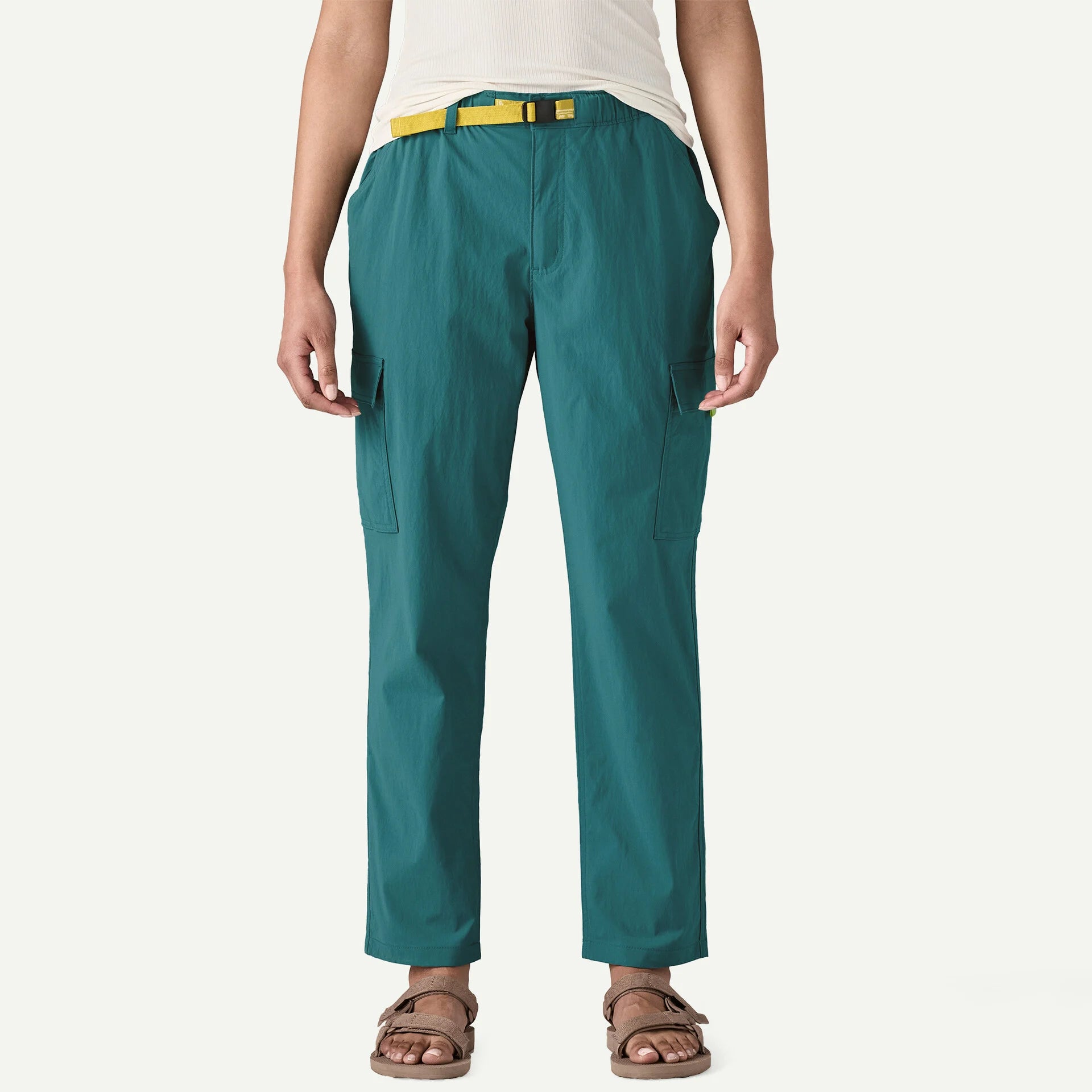 Rugged, multifunctional cargo pants, built of quick-drying 96% NetPlus® postconsumer recycled nylon made from recycled fishing nets to help reduce ocean plastic pollution/4% elastane plain weave; with a durable water repellent (DWR) finish made without intentionally added PFAS, and 40+ UPF sun protection